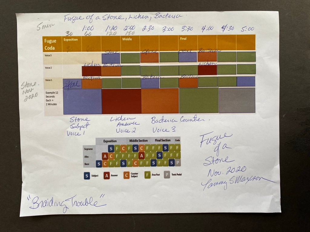 Because my project is a time-based project. The visual aspects may not be fully realized in my lifetime or maybe not for many years. I have come to depend on other sensory components to tell the story of the project. I have been using my voice to story tell, manifest, and make connection. However, this is just the surface of the reason I use my voice to speak. It is the sound of my voice the tone, the frequency, the emotional connection that I am trying to produce. I have been playing with polychoral audio mixing of my voice trying to maybe recreate a hymn or chant. Layering my voice to make something more. I didn’t really know where I was going with this practice. The Gregorian monks use a scale, a frequency that is meditative and healing. Last fall I played with the polychoral and fugue as an artist practice but I think I may now go in the direction of solfeggio frequency and elemental sounds. The ecology of my place is unbalanced, part of what I am doing is healing this unbalance. All of this is reflective of my own need for healing and rebalance. Maybe through this practice I can look at healing through voice, pulling my audience into the story with my tone, and posable manifest a healing of place and a healing of self.