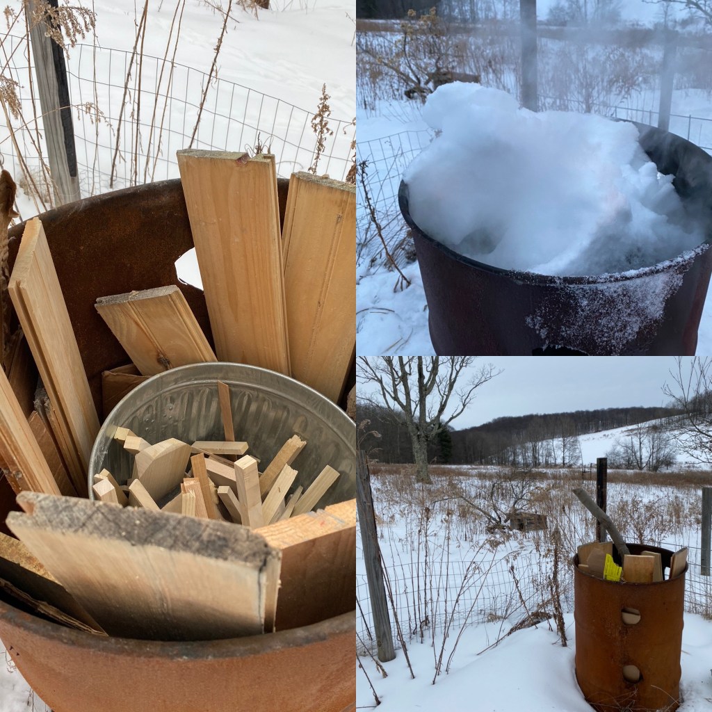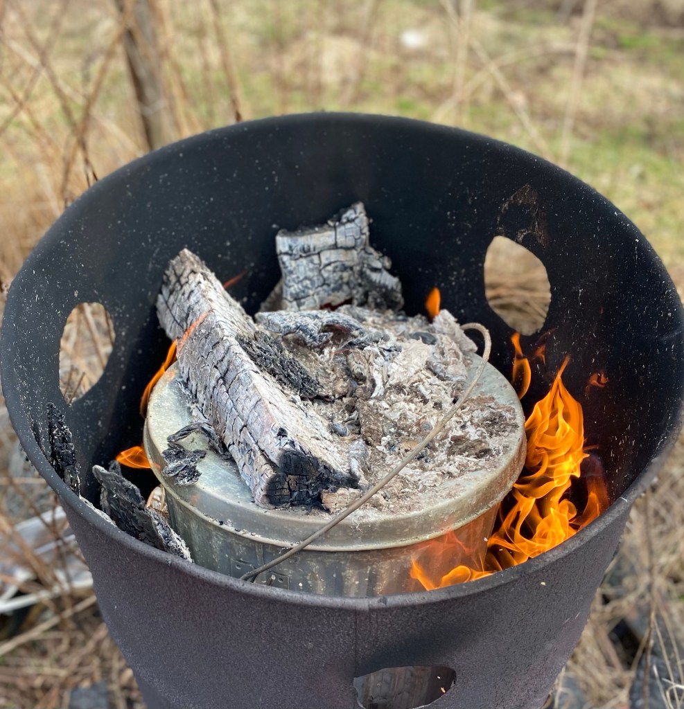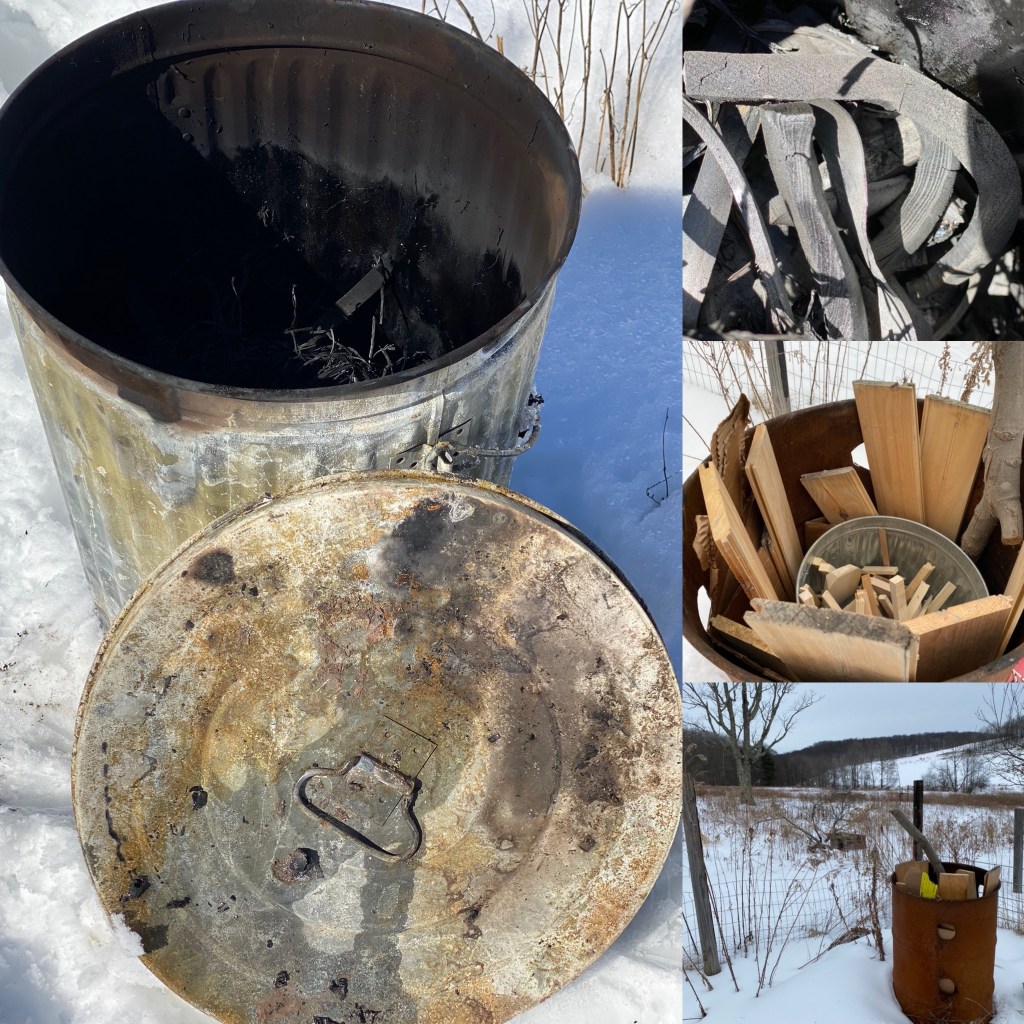 Carbon is now becoming a medium of the project. Life is carbon. I am building life, air and carbon need to be carefully considered. Tearing earth with a plow is a large component to the global warming effect that no one talks about. Plowing allows carbon to evaporate into the air and is lost from soil. Trees breathe that carbon back into growth of their bodies and die back into soil to feed life. For the trees carbon is like mother’s milk sipped from the air. By planting trees and planting an orchard I am decreasing the carbon from the air and putting it back where we need it. In just the last couple of weeks I have built and experimented with a kiln to make biochar. The charcoal will be inoculated with nitrates, bacteria, fungi, and nutrients. This material will keep the carbon in the soil for hundreds of years and give structure to the soil and a surface area for microscopic life to flourish.